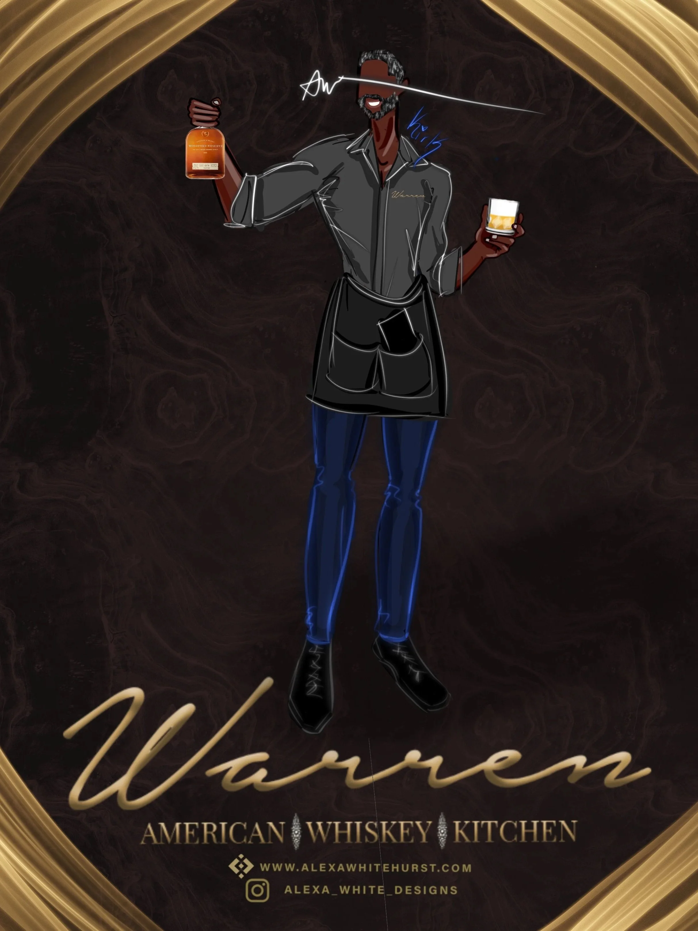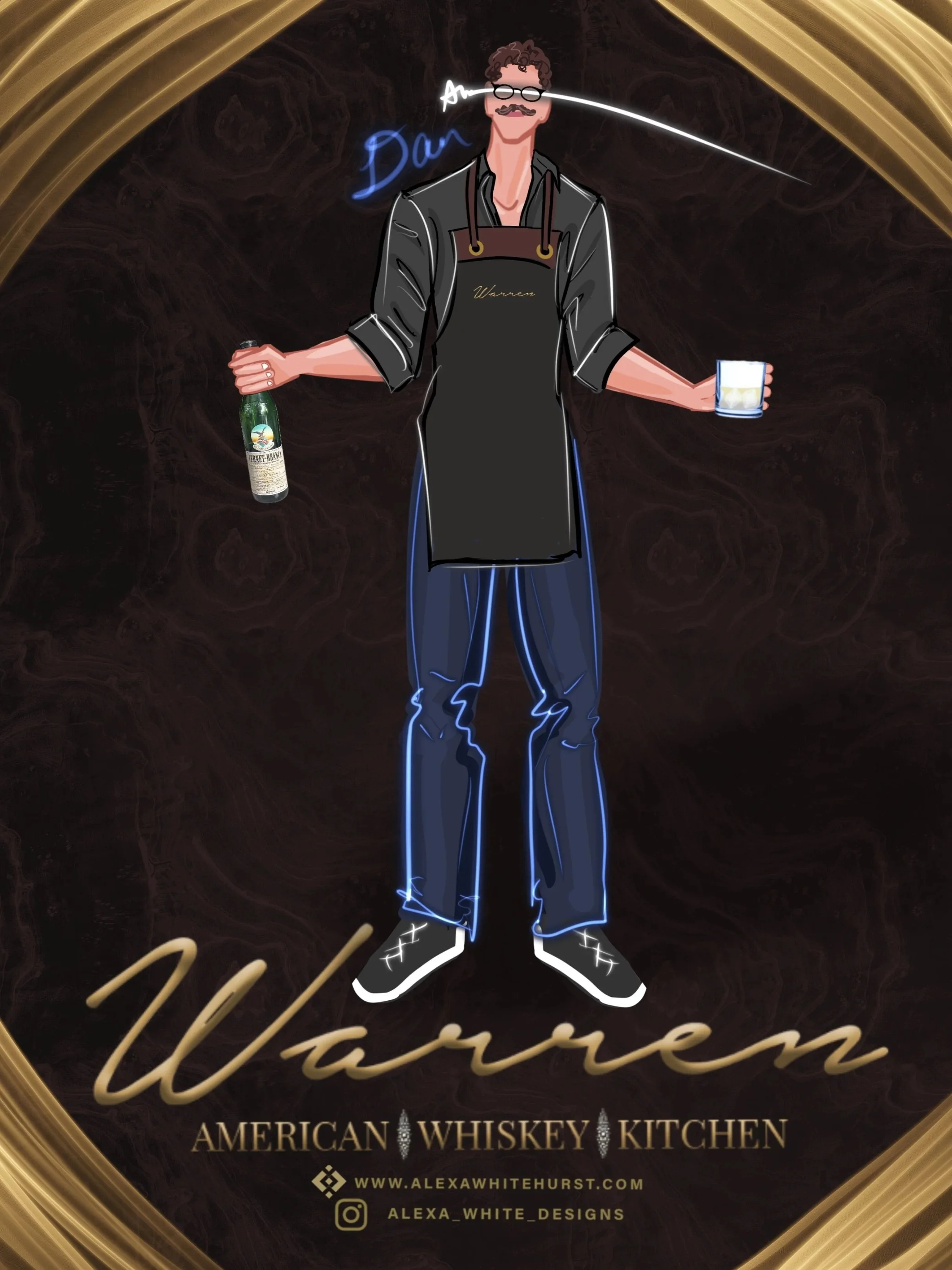 Using her iPad and Apple Pencil, Alexa creates modern, chic illustrations on the spot—each one completely personalized with your guests’ outfits, hairstyles, and accessories.